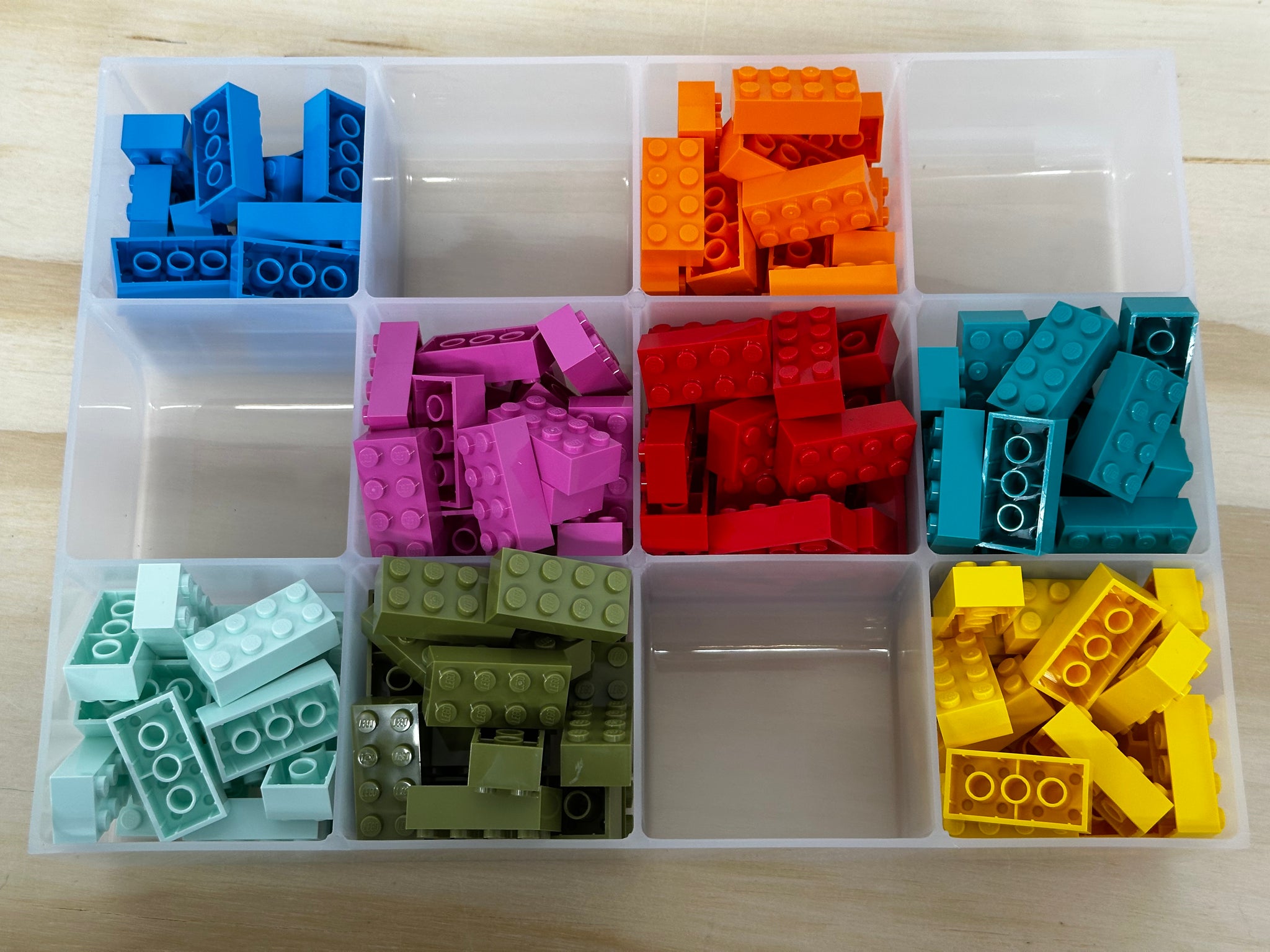 Organize for better building with custom LEGO sorting trays. Organize all of your building projects with 3 LEGO sorting trays, each with specially designed compartments for separating elements by size and color. Each compartment has been made with a curved bottom design for ease of removal of pieces. (LEGO not included - shown only for visualization purposes)
